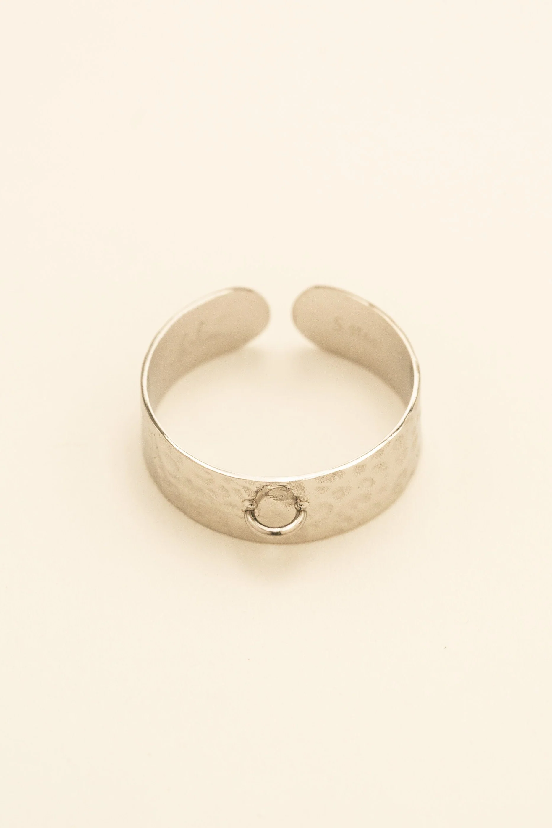 Bague en acier inoxydable composée d'un effet martelé et d'une attache pour les lockies.