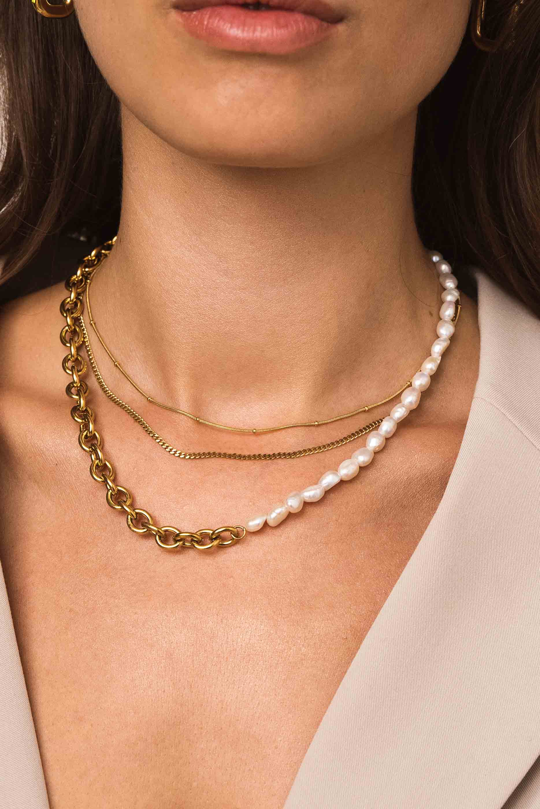 Collier en acier inoxydable composé de 2 chaînes maillées différentes.
