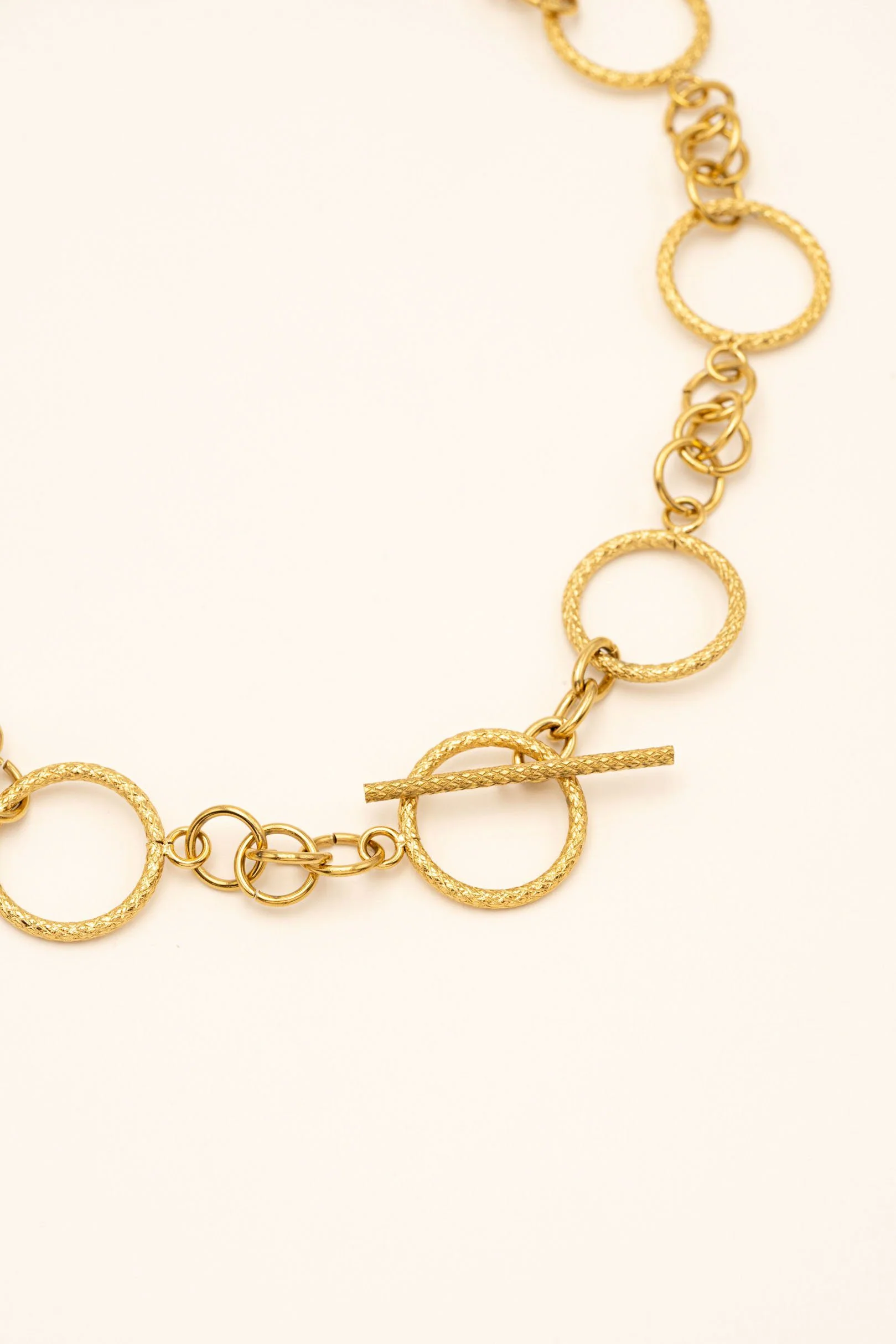 Collier en acier inoxydable composé d'un jeu de maillons ronds texturées et lisses.