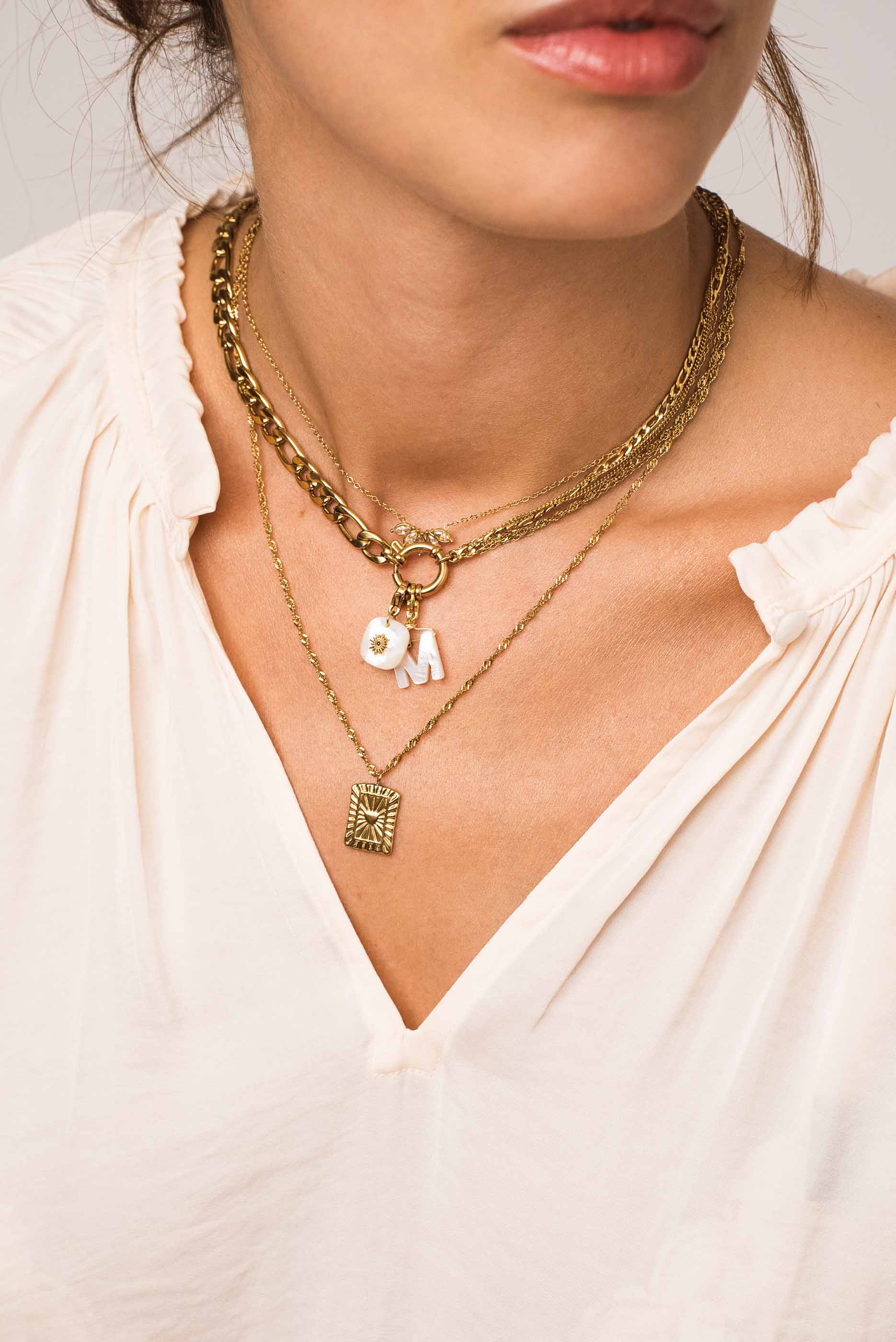 Charms en acier inoxydable et pierre naturelle.